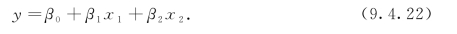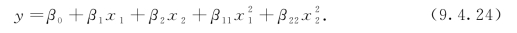 可以看出结果不是太好:P=0.0247,取α=0.05时回归模型式(9.4.22)可用,的置信区间包含了零点.下面将试图用x1,x2的二次函数改进它.