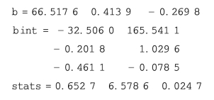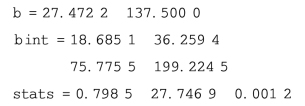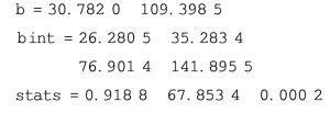 [b,bint,r,rint,stats]=regress(Y,X,alpha)