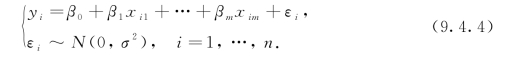 其中σ未知.现得到n个独立观测数据(yi,xi1,…,xim),i=1,…,n,n>m,由式(9.4.3)得