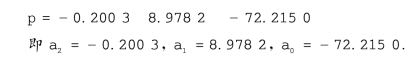 我们再作一遍例2商品销售量与价格问题,选择纯二次模型,即