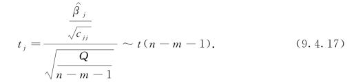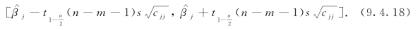 式(9.4.17)也可用于对βj作区间估计(j=0,1,…,m),在置信水平1-α下,βj的置信区间为