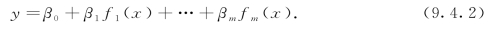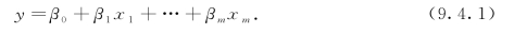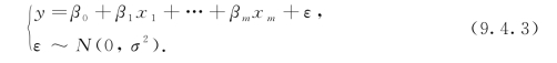 其中x=(x1,…,xm),fj(j=1,…,m)是已知函数.这里y对回归系数β=(β0,β1,…,βm)是线性的,称为多元线性回归.不难看出,对自变量x作变量代换,就可将式(9.4.2)化为式(9.4.1)的形式,所以下面以式(9.4.1)为多元线性回归的标准型.