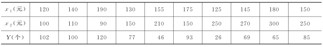 例2 某厂生产的一种电器的销售量y与竞争对手的价格x1和本厂的价格x2有关.表9-37是该商品在10个城市的销售记录.