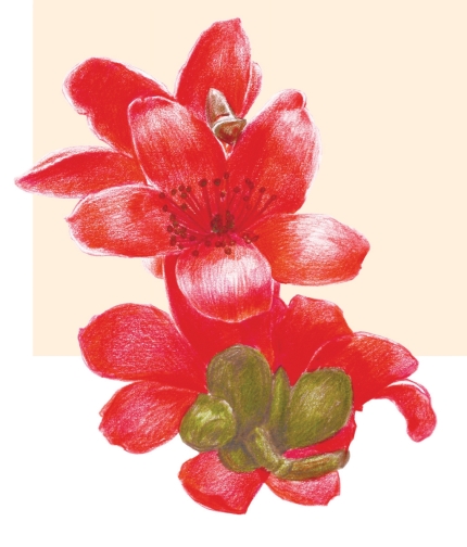 木棉俗称红棉、英雄树、攀枝花、斑芝棉。落叶大乔木,树皮灰白色,树干基部或幼树的树干通常有圆锥状的粗刺。掌状复叶,叶面光滑无毛。花单生枝顶叶腋,通常红色,有时橙红色。蒴果长圆形,密被灰白色长柔毛和星状柔毛。