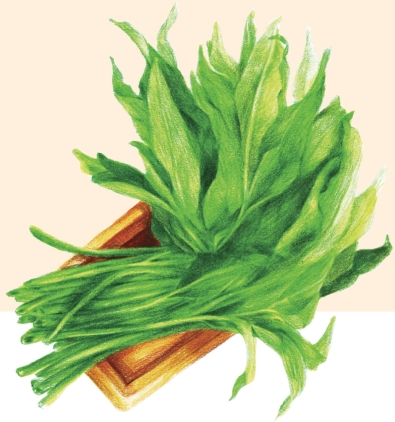 空心菜,又称蕹菜、通菜、蓊菜、藤藤菜。一年生草本,蔓生或漂浮于水。茎圆柱形,具中空的分节,节上生根。叶片卵形、长卵形、长卵状披针形或披针形,顶端锐尖,基部心形。聚伞花序具1—5朵花,花冠白色、淡红色或紫红色,漏斗状。蒴果卵球形至球形,无毛。种子密被短柔毛或有时无毛。