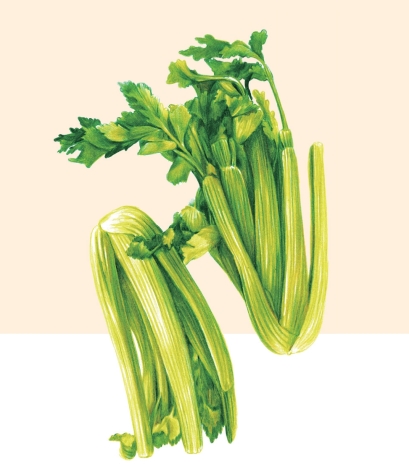 芹菜又称旱芹、药芹。为二年生或多年生草本,有强烈香气。茎直立、光滑,有少数分枝,并有棱角和直槽。叶片轮廓长圆形,通常具3裂,裂片近菱形,边缘有圆锯齿或锯齿。复伞形花序顶生或与叶对生,小伞形花序有花7—29朵,花瓣白色或黄绿色,圆卵形。分生果圆形或长椭圆形,果棱尖锐。花期4—7月。