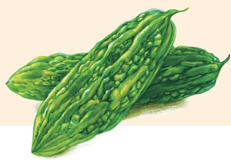 苦瓜又名凉瓜、癞葡萄。为一年生攀缘状柔弱草本植物,多分枝,茎、枝被柔毛,具纤细卷须。叶片圆形,膜质,被毛,具深裂,边缘具不规则小裂片,先端多半钝圆形稀急尖,基部弯缺半圆形,叶脉掌状。雌雄花同株,花冠黄色,裂片倒卵形,先端钝,被柔毛。果实纺锤形,多瘤皱,果味甘苦,成熟后橙黄色,由顶端3瓣裂,种子多数,长圆形。花、果期5—10月。