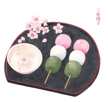 提到春天,立刻想到樱花,想到花见,想到三色团子。春日吃三色团子似乎成了日本人的思维定式,200多年后的今天依然未变。每到初春,不光果子店,超市也会摆上一排排花见团子。纵是活在钢筋水泥森林里的都市人,看了颜色娇嫩的团子,似乎也能感受到春天的气息。