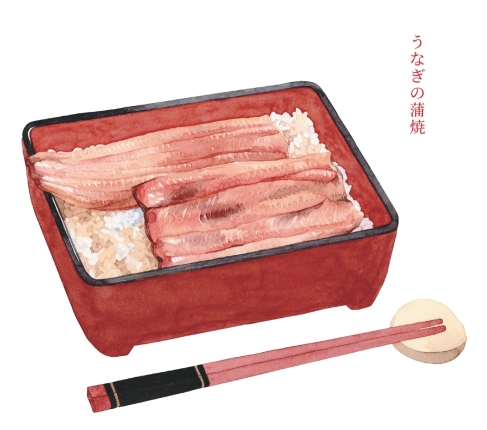 18世纪末是江户风蒲烧鳗鱼的全盛期,上至豪商巨富,下至町人百姓,无人不知它的美味。吃鳗鱼的地方分3个等级,最高级的是鳗屋,一律现杀现烤,客人要候上许久,热腾腾的鳗鱼才上桌。江户人性子急,但在鳗屋有耐心,店主上一壶酒,客人就着腌菜喝,平心静气地等鱼烤好;比鳗屋低一等的是小饭馆,除了鳗鱼,还卖泥鳅锅、烤鲶鱼等平民吃食;最低等的是流动小摊,鳗鱼先烤好,堆在箱中保温,来了客人,再涂酱汁重新烤烤,是便宜又好吃的“快餐”。
