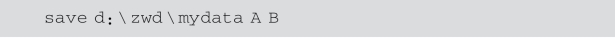 注意:mydata是用户自己定义的文件名,MATLAB默认扩展名为.mat.上述save命令执行以后,该mydata.mat文件将存放在当前目录.假如用户有意要让mydata.mat存放在指定的其他目录(比如d:\zwd目录)中,那么save命令改为: