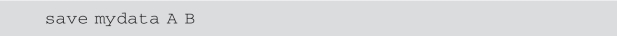 假定变量A和B存在于MATLAB工作空间中,输入以下命令便可借助mydata.mat文件保存A和B:
