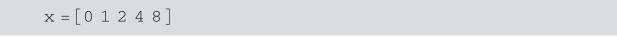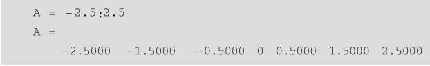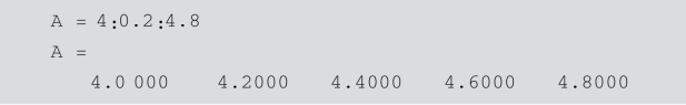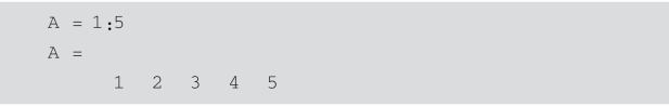利用MATLAB提供的冒号操作符(first:last)可以生成1×n的矩阵,即数组.数组中的元素按顺序从first一直到last.默认序列是以增量方式生成的,后面的数比它前面一个数大1.例如: