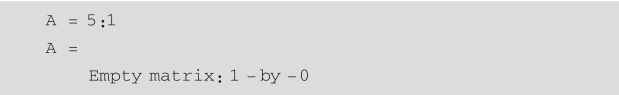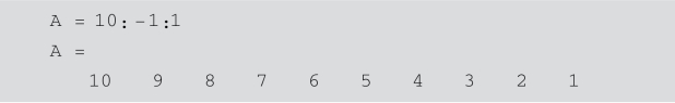 注意,冒号操作符生成的默认序列总是增序排列,而不是减序排列的.下面试图生成减序排列的数值序列时,结果失败.