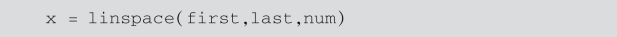 2.用linspace函数构造数组用linspace函数构造数组,需要指定首尾值和元素总个数.基本形式是