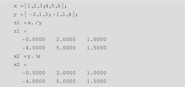 显然x./y和y.\x值相等.这与前面介绍的矩阵的左除、右除是不一样的.