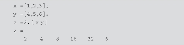 若两个矩阵的维数一致,则A.^B表示两矩阵对应元素进行乘方运算,例如: