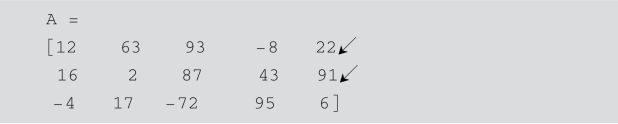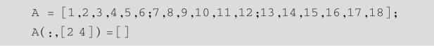 其中,第二条命令将删除A的第2列和第4列元素.输出为: