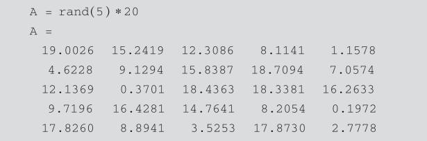 下面的代码创建元素为服从均匀分布的随机数的矩阵或数组,将每个元素乘以20.