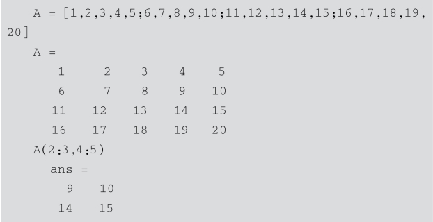 利用MATLAB的冒号运算,可以很容易地从给出的矩阵中获得子矩阵,这样处理的速度比利用循环语句来赋值的方式快得多,所以,在实际编程时,应该尽量采用这种赋值方法.