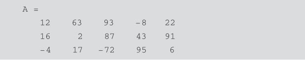 MATLAB允许用户对一个矩阵的单个元素进行赋值和操作.例如,如果想将矩阵A的第3行第2列的元素赋为200,则可以通过下面语句来完成: