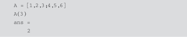 在MATLAB中,也可以采用矩阵元素的序号来引用矩阵元素.矩阵元素的序号就是相应元素在内存中的排列顺序.矩阵元素按列编号,先第一列,再第二列,依此类推.例如: