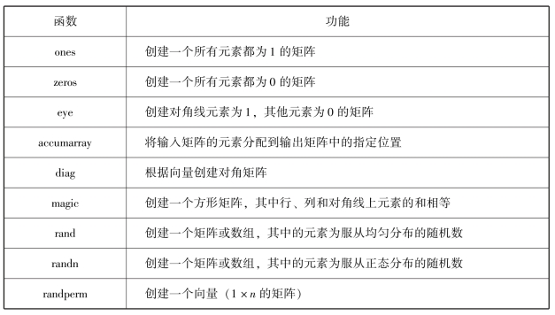 MATLAB提供了多个创建不同矩阵的函数,见表2-4.利用这些函数可以创建各种特殊矩阵.