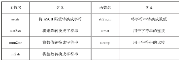 MATLAB还有许多与字符串处理有关的函数,表2-5列出了几个常用的函数.