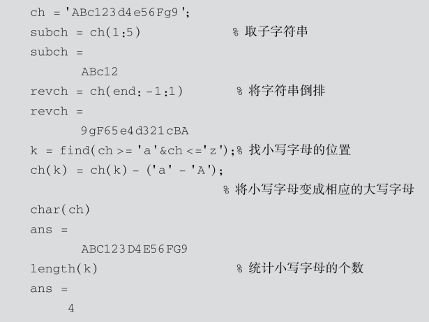 MATLAB将字符串当作一个行向量,每个元素对应一个字符,其标识方法和数值向量的相同.也可以建立多行字符串矩阵.例如: