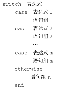switch子句后面的表达式应为一个标量或一个字符串,case子句后面的表达式不仅可以为一个标量或一个字符串,还可以为一个单元矩阵.如果case子句后面的表达式为一个单元矩阵,则表达式的值等于该单元矩阵中的某个元素时,执行相应的语句组.