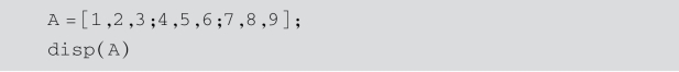 注意:和前面介绍的矩阵显示方式不同,用disp函数显示矩阵时,将不显示矩阵的名字,并且输出格式更紧凑,不留任何没有意义的空行.