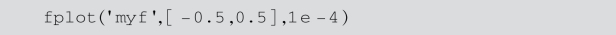 再使用fplot函数绘制函数文件myf.m所定义的曲线: