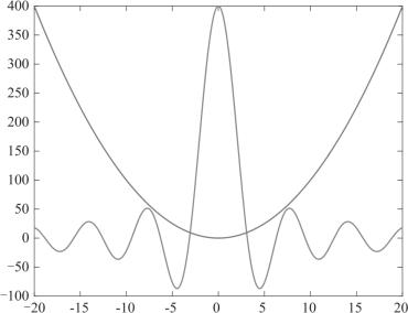 例3.8 用fplot函数在[-20,20]内绘制两条曲线和y=x2.