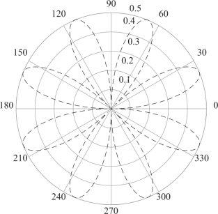 例3.15 绘制的ρ=sin(2θ)cos(2θ)极坐标图.