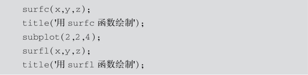同样,有两个与surf函数相似的函数:带有等高线的surfc函数和具有光照效果的surfl函数,用法和surf相似.