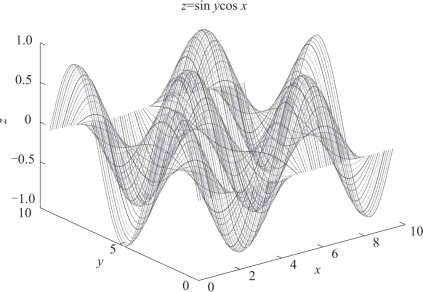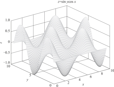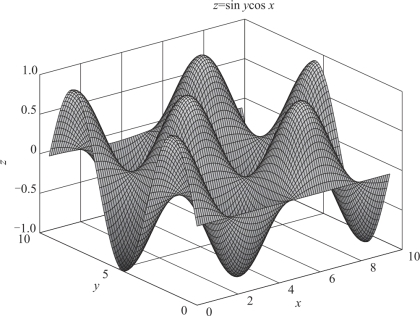 例3.18 绘制三维曲面z=sin y cos x.