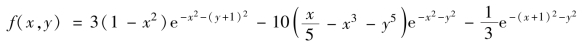 其中,n表示矩阵的行数和列数;x和y在矩形[-3,3]×[-3,3]中等距分割,分别沿x和y方向将区间分成n-1份,并计算这些网格点上的函数值.n的默认值是49.