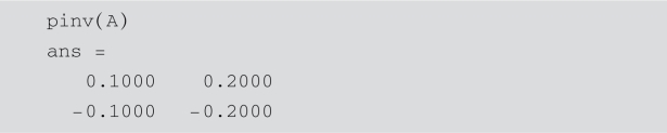 此时称矩阵B为矩阵A的伪逆,也称为广义逆矩阵.在MATLAB中,求一个矩阵伪逆的函数是pinv(A).例如,对上述A: