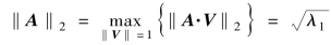 因为A是一个m×n的矩阵,而V是一个n维列向量,所以A⋅V是一个m维列向量.对应前面定义的3种不同的向量范数,定义3种矩阵范数,这样定义的矩阵范数‖A‖称为矩阵从属于向量的范数.