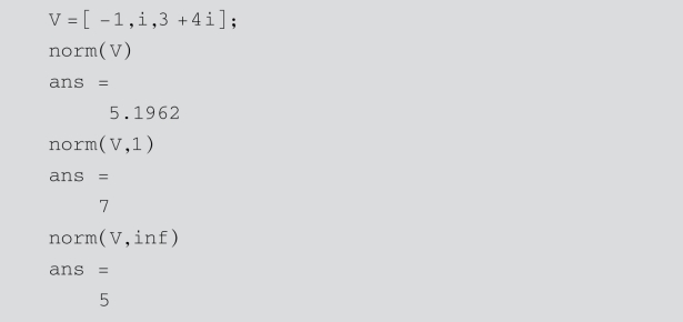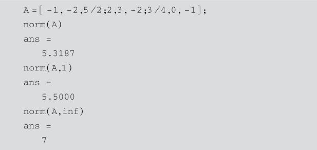 MATLAB提供了求3种矩阵范数的函数,其函数调用格式与求向量的范数的函数完全相同,这里不再赘述.例如: