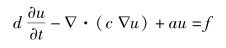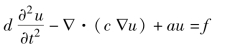 上述所有方程都是在二维平面区域Ω上,方程中∇是梯度算子,u是待解的未知函数,c、a、f和d是已知的方程系数.在椭圆型方程中,这些系数可以是常数或者函数,但在抛物型和双曲型方程中必须为常数,λ是未知的特征值.