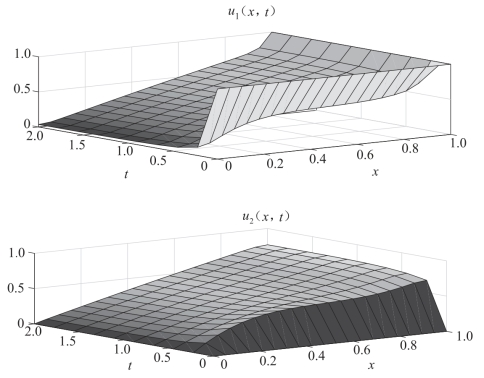 其中,y2(0)=y1(0)=1,t∈[0,100].
