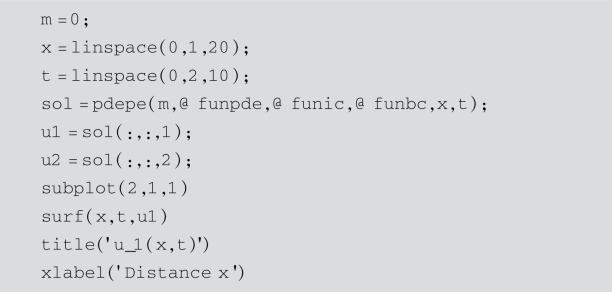 sol=pdepe(m,@pdefun,@icfun,@bcfun,xmesh,tspan)