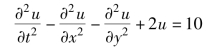 单击工具栏第七个按钮,在弹出的对话框中选择相应的偏微分方程类型,并按照其标准形式输入方程的系数.本题中,偏微分方程为双曲型,系数分别为d=1、c=1、a=2和f=10.