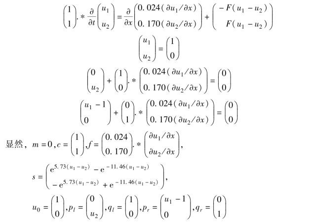 @pdefun:是偏微分方程(组)的描述函数,必须先将微分方程转换成下面的标准形式: