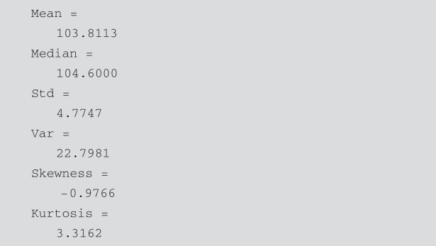记x表示所给数据,求其均值、中位数、标准差、方差、偏度和峰度.