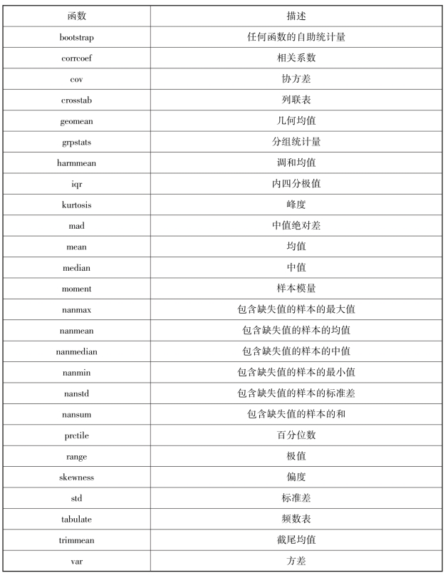 除此之外,MATLAB中关于统计量描述的其他函数见表6-2.