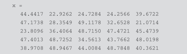 ①在区间[20,50]内均匀分布的5阶随机矩阵;
