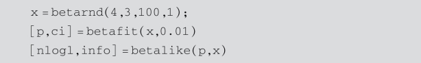 注意到betalike函数中,对于给定的数据x,参数p必须先用参数估计方法估计出来.极大似然估计还可以用mle函数,具体用法可参看MATLAB中的帮助文件.