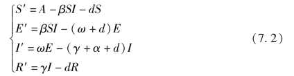 甲型H1N1流感的传播途径是与病源的直接接触,与普通流感、禽流感相比,潜伏期较长,因此,建立仓室模型时,应考虑加入潜伏者类.对SIR模型加以改进,就可以得到甲型H1N1流感传播的SEIR模型.此时,易感者从患病到康复移出的过程如图7-2所示.