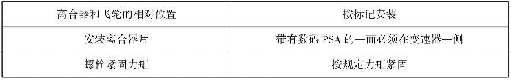 (2)安装离合器1。安装离合器片时,带有数码的一面必须在变速器一侧。